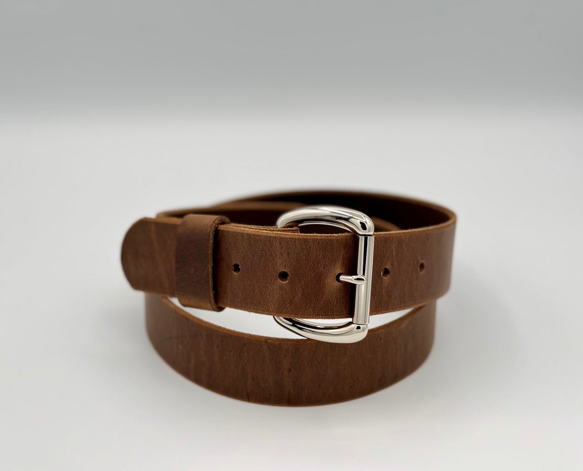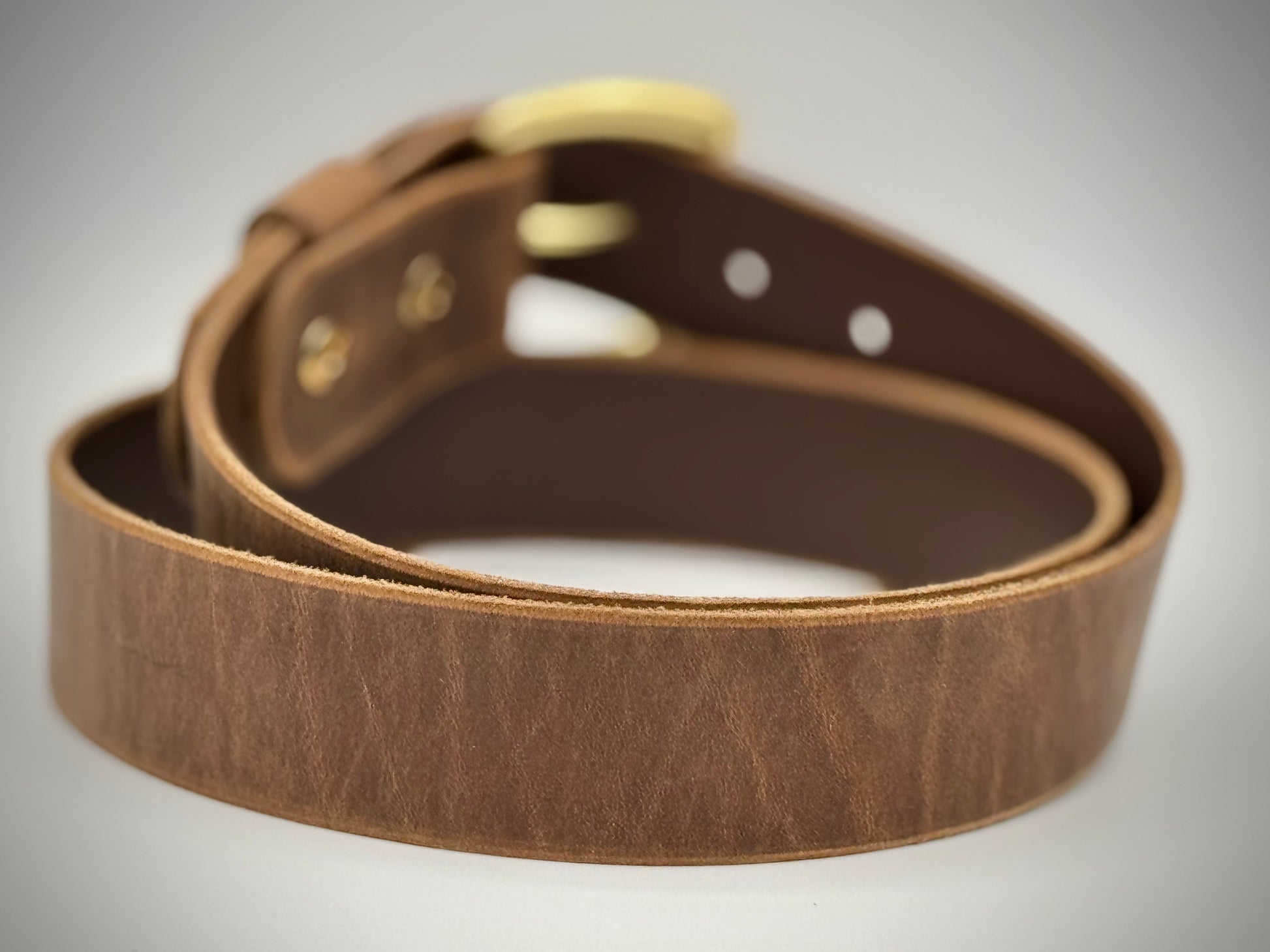 Important: Belt measurements are taken from the fold (where the leather wraps the buckle) to the 3rd hole from the belt tip end- not including the buckle itself. If you're comparing to a belt you own, measure it the same way.